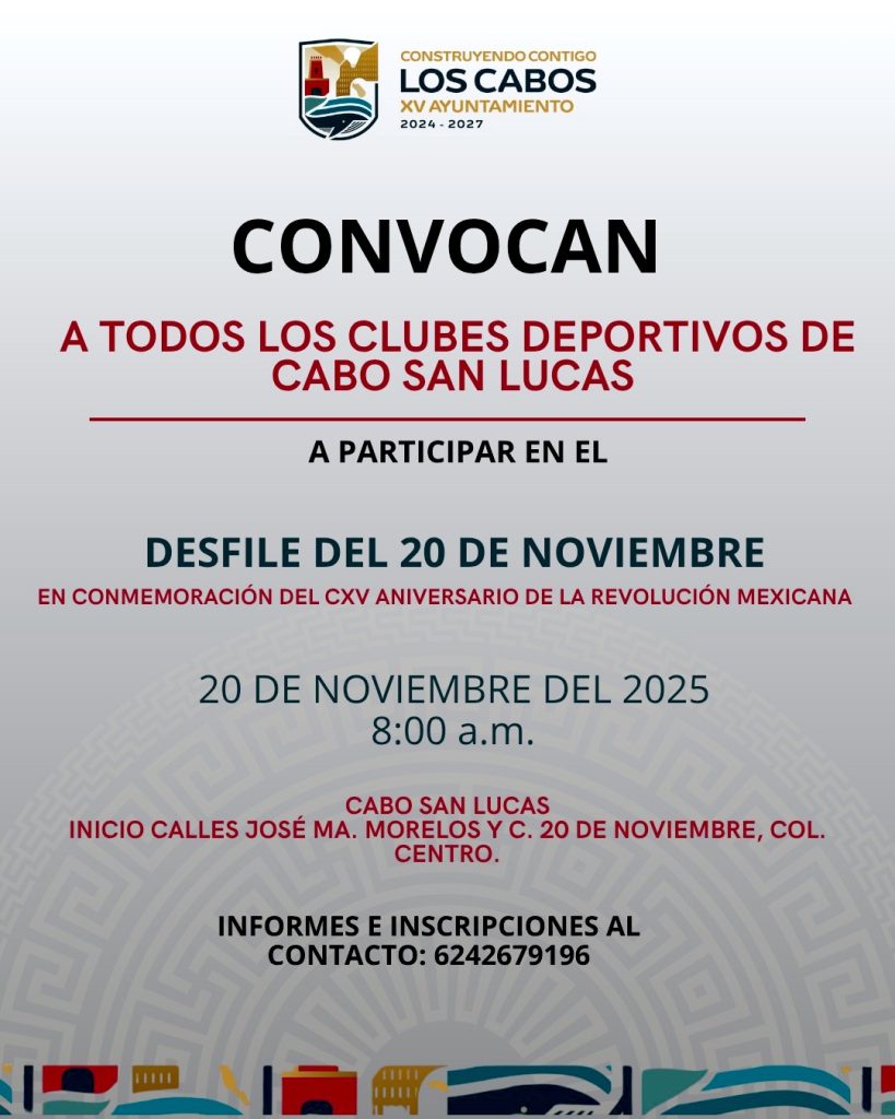 Con esta convocatoria, el Ayuntamiento de Los Cabos promueve los valores cívicos, el trabajo en equipo y el espíritu deportivo entre la comunidad estudiantil y los clubes participantes, fortaleciendo la identidad nacional y el sentido de pertenencia.