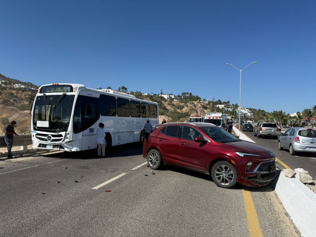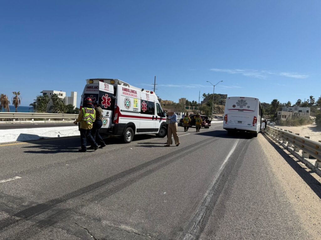 San José del Cabo, Baja California Sur.– Un accidente automovilístico registrado la tarde de este viernes provocó afectaciones en la circulación sobre la carretera Transpeninsular, a la altura del puente de Costa Azul, en el tramo con dirección de San José del Cabo hacia Cabo San Lucas.