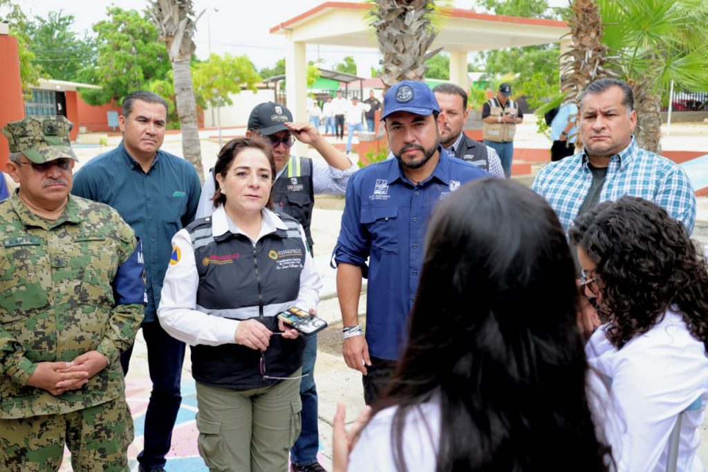 Los Cabos, Baja California Sur.– Acompañado por la coordinadora nacional de Protección Civil, Laura Velázquez Alzúa, representantes del Gobierno de Baja California Sur, las fuerzas armadas y titulares de distintas dependencias municipales, el alcalde de Los Cabos, Christian Agúndez Gómez encabezó un recorrido por zonas consideradas de riesgo, así como por refugios temporales habilitados ante el paso del huracán “Priscilla”.