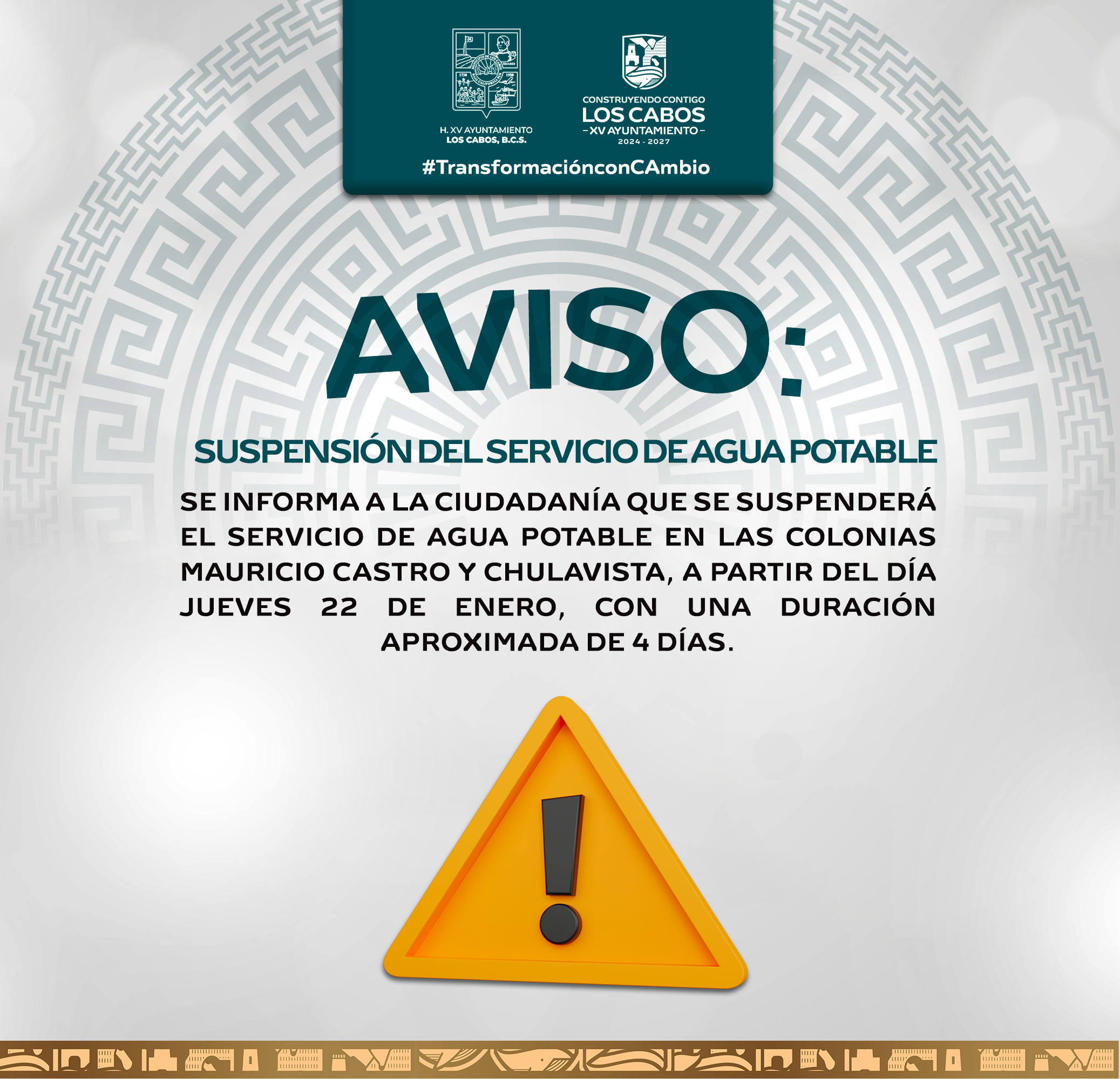 Derivado de estas acciones, será necesario realizar un corte temporal en el suministro de agua potable en las colonias Mauricio Castro y Chulavista, el cual iniciará el día jueves 22 de enero y tendrá una duración aproximada de cuatro días.