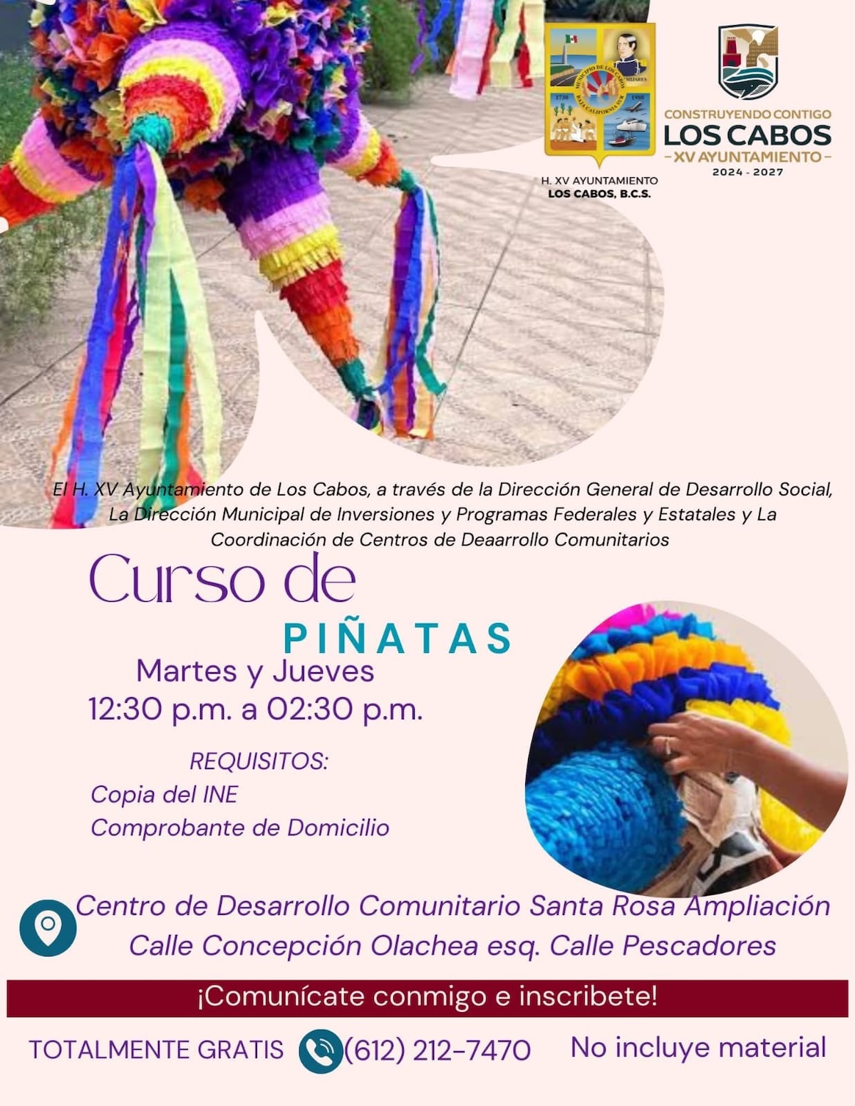 Con el propósito de fortalecer la economía local, impulsar el autoempleo y brindar herramientas para el desarrollo comunitario, el XV Ayuntamiento de Los Cabos, a través de la Dirección General de Desarrollo Social y la Dirección Municipal de Inversiones y Programas Federales y Estatales, invita a la ciudadanía a participar en los cursos gratuitos de capacitación que iniciarán el próximo jueves 08 de enero de 2026.