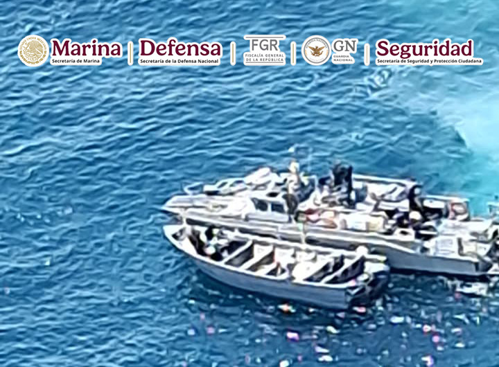 En una operación marítima encabezada por elementos de la Secretaría de Marina (Semar) a través de la Armada de México en funciones de Guardia Costera, en coordinación con la Secretaría de Seguridad y Protección Ciudadana (SSPC) y la Fiscalía General de la República (FGR), durante operaciones de vigilancia y seguridad marítima, se realizó la detención de seis presuntos infractores de la ley a bordo de una embarcación menor con tres motores fuera de borda, con 14 bultos tipo costalilla conteniendo en su interior 580 paquetes tipo ladrillo con polvo blanco con características similares al clorhidrato de cocaína, con un peso aproximado de 650 kilogramos (mismo que será confirmado por la autoridad ministerial correspondiente), así como 350 litros de combustible.