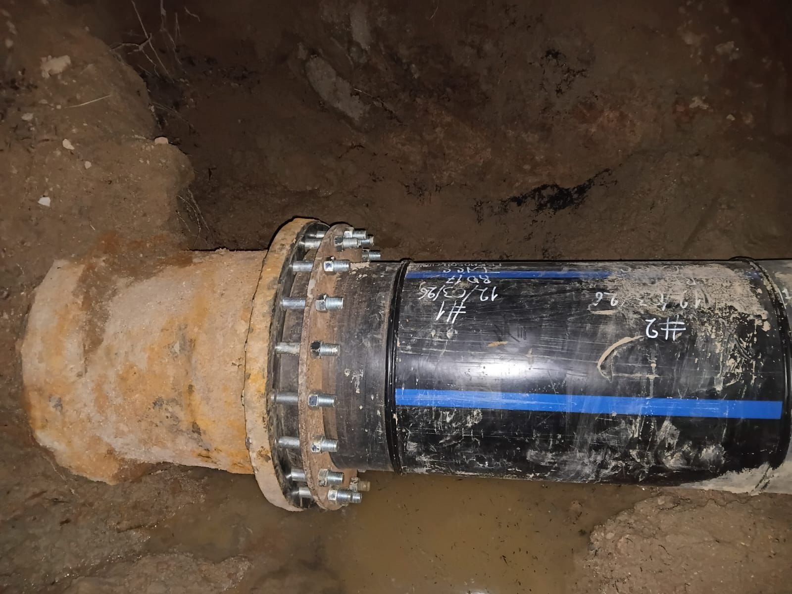 Para localizar con precisión el origen de la fuga fue necesario realizar excavaciones de aproximadamente seis metros de profundidad, donde se confirmó desgaste en un tramo del tubo de polietileno termofusionado, específicamente en la zona del stop ben del acueducto.