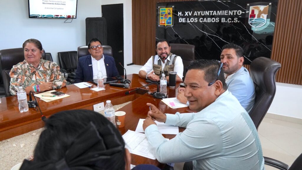 Los Cabos, Baja California Sur.– Con el objetivo de fortalecer el diálogo y construir soluciones conjuntas para la atención de demandas sociales y comunitarias, el presidente municipal de Los Cabos, Christian Agúndez Gómez sostuvo este lunes una reunión de trabajo con representantes de la organización Antorcha Campesina.
