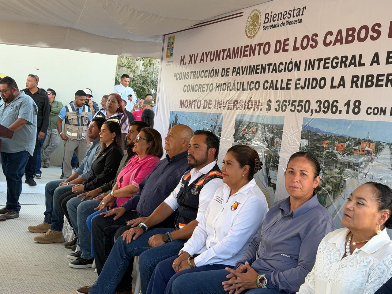 San José del Cabo.- Los diputados locales, Omar Torres, Cristina Contreras Rebollo, Alondra Torres García y Gabriela Montoya acompañaron al gobernador del estado, Víctor Castro Cosío y al presidente municipal, Christian Agúndez Gómez, a la entrega de importantes obras de pavimentación y campos deportivos en la cabecera municipal de San José del Cabo con recursos del Ramo 33.