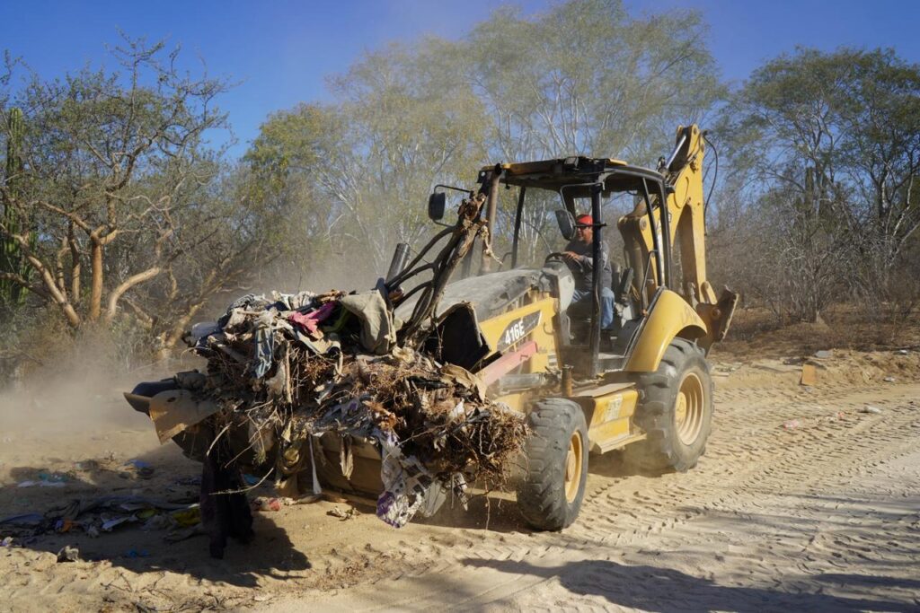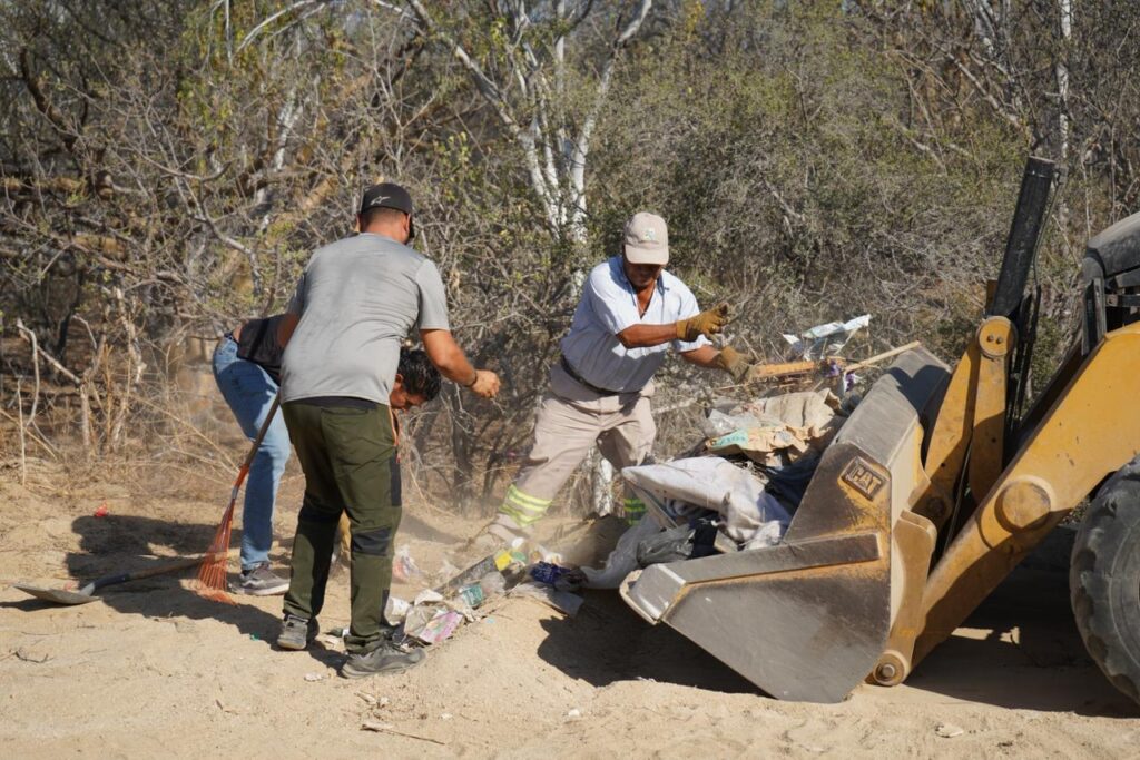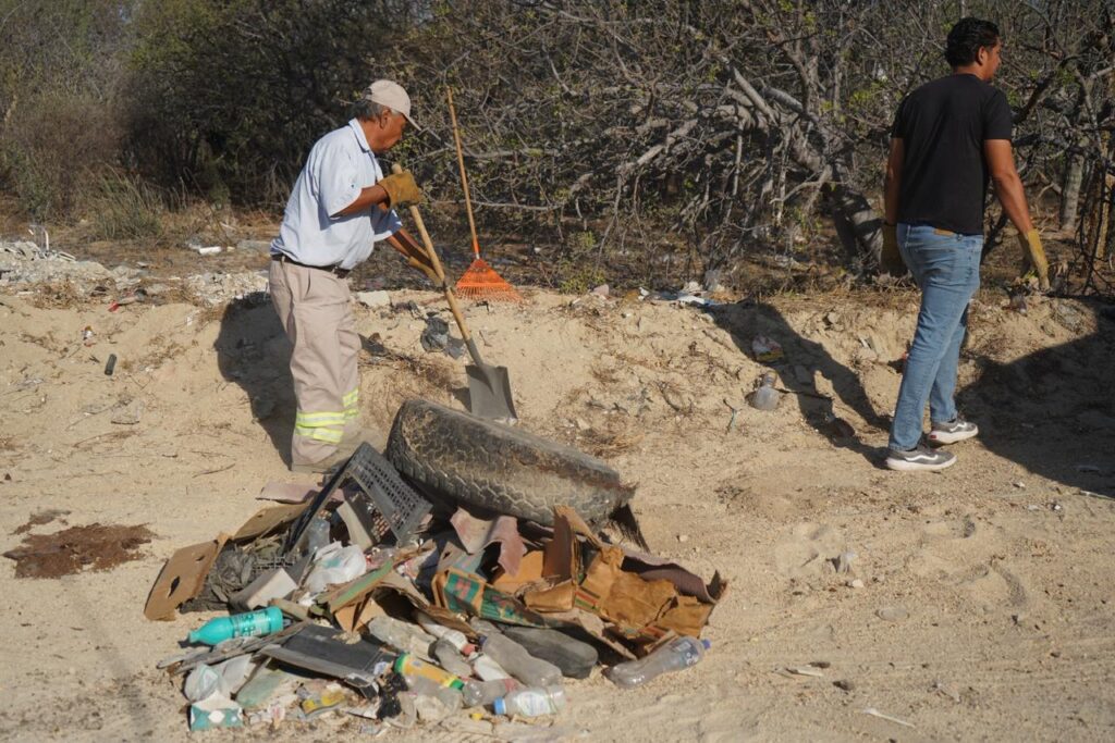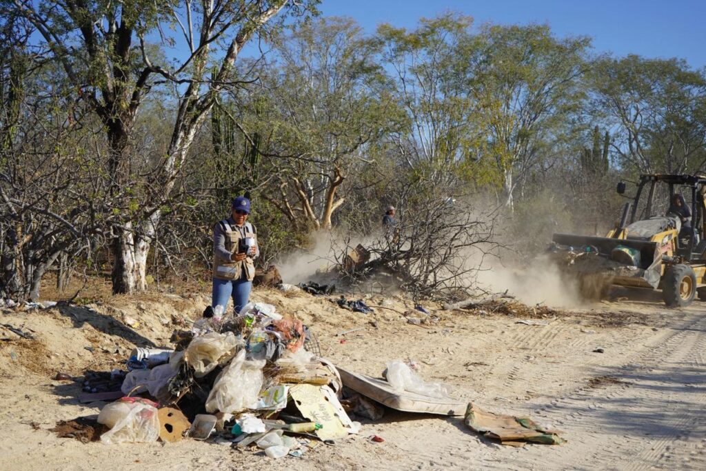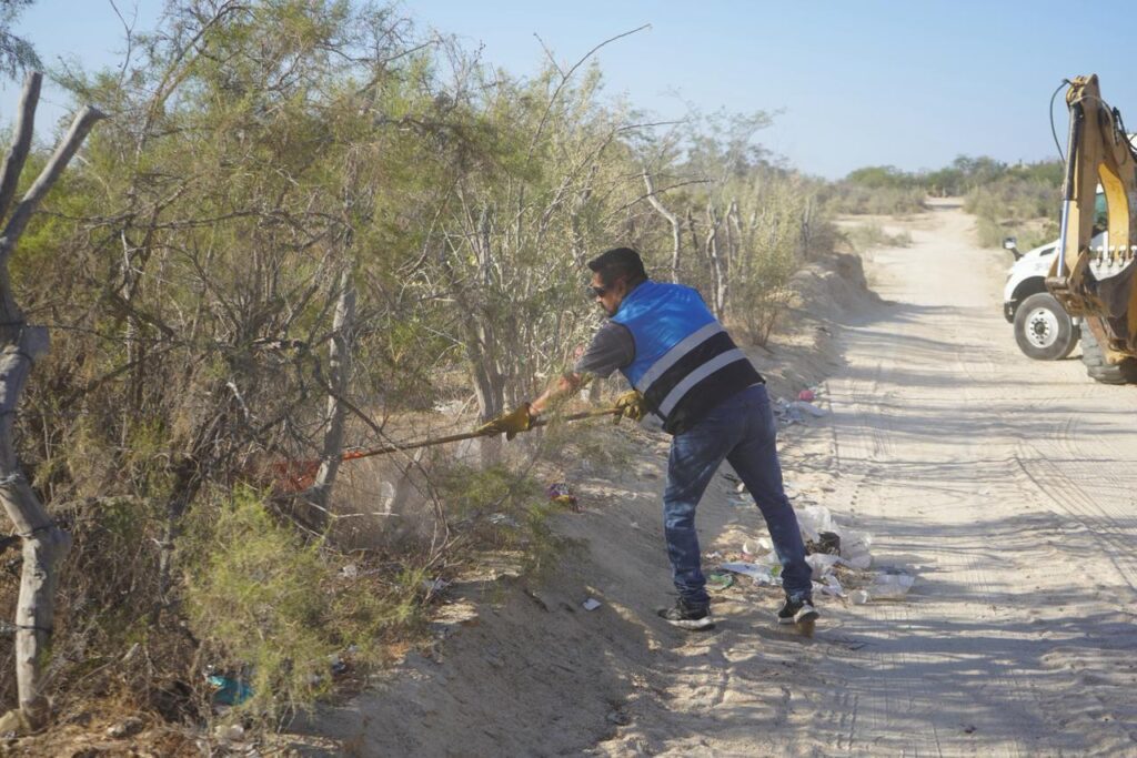 Los Cabos, Baja California Sur.– Como seguimiento al reporte de habitantes de la comunidad de La Ramadita, relacionada con la presencia de tiraderos clandestinos en caminos vecinales y arroyos, la delegada municipal de Cabo San Lucas, Karina de la O Uribe, acudió para realizar labores de recolección de desechos en distintos puntos afectados, con el objetivo de sanear estas áreas y evitar mayores impactos al entorno.