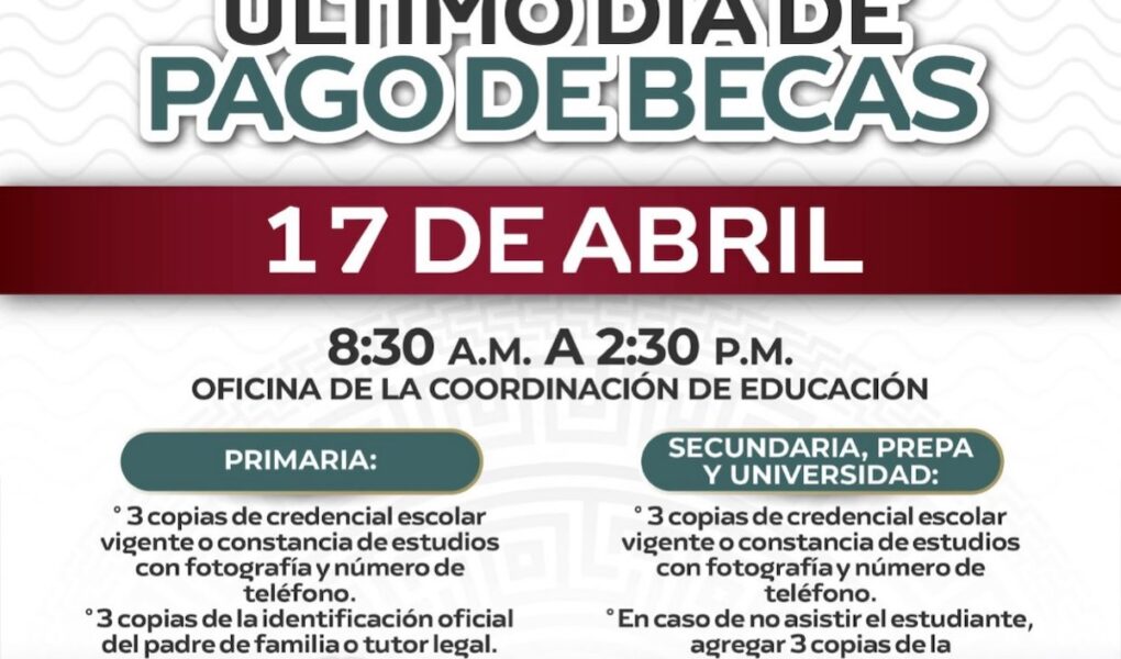 La directora municipal de Educación del XV Ayuntamiento de Los Cabos, Juana Ortiz Cruz, informó que el próximo 17 de abril será el último día de pago del programa municipal