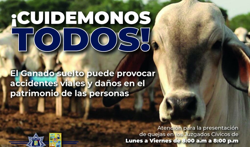 Los Cabos, Baja California Sur.- Derivado del continúo ganado suelto en las calles, avenidas y carreteras en el municipio, la Dirección General de Seguridad Pública, Policía Preventiva y Tránsito Municipal