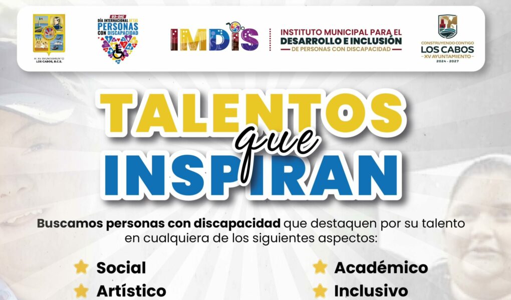 Los Cabos, B.C.S.- El Instituto Municipal para el Desarrollo e Inclusión de las Personas con Discapacidad (IMDIS) ha lanzado una nueva convocatoria denominada ‘’Talentos que Inspiran’’, dirigida a personas con