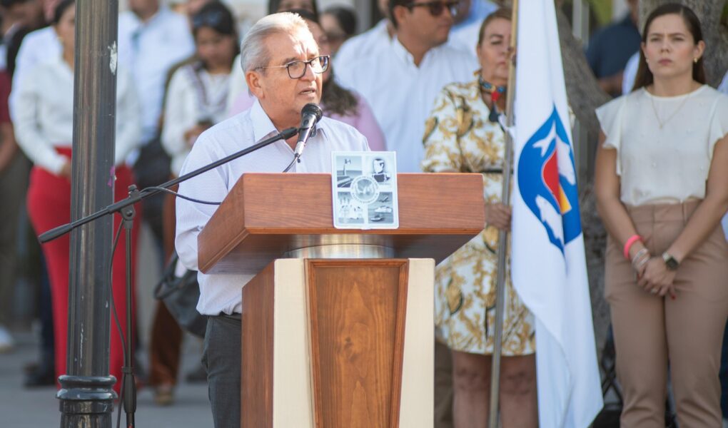 Los Cabos, B.C.S., 28 octubre 2024.- En el marco de los Honores a la Bandera, en representación del presidente municipal, Christian Agúndez Gómez, el tesorero municipal Rigoberto Arce, hizo un