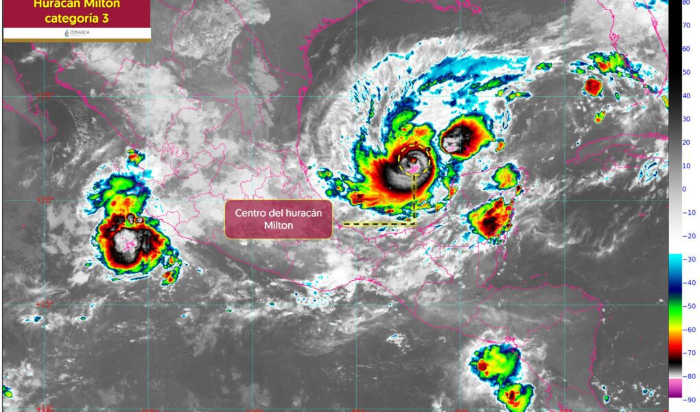 Situación Actual:El huracán Milton se ha intensificado a una peligrosa categoría 3 en la escala Saffir-Simpson, manteniendo vientos máximos sostenidos de 205 km/h y ráfagas de hasta 250 km/h. El