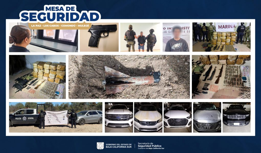 Aseguran armas, droga y vehículos robados en operativos en BCS
