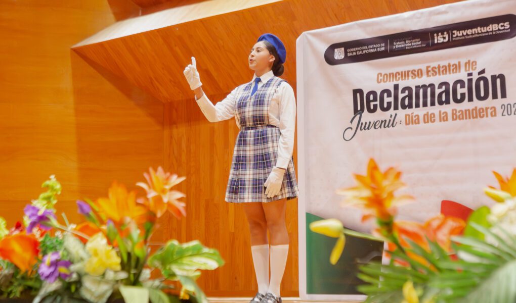 Con motivo del Día de la Bandera, el Instituto Sudcaliforniano de la Juventud (ISJ) organizó el Concurso Estatal de Declamación 2026 en la sala de conciertos de la Escuela de