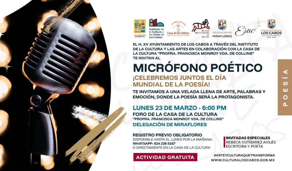 Los Cabos, Baja California Sur.– En el marco del Día Mundial de la Poesía, el XV Ayuntamiento de Los Cabos, a través del Instituto de la Cultura y las Artes