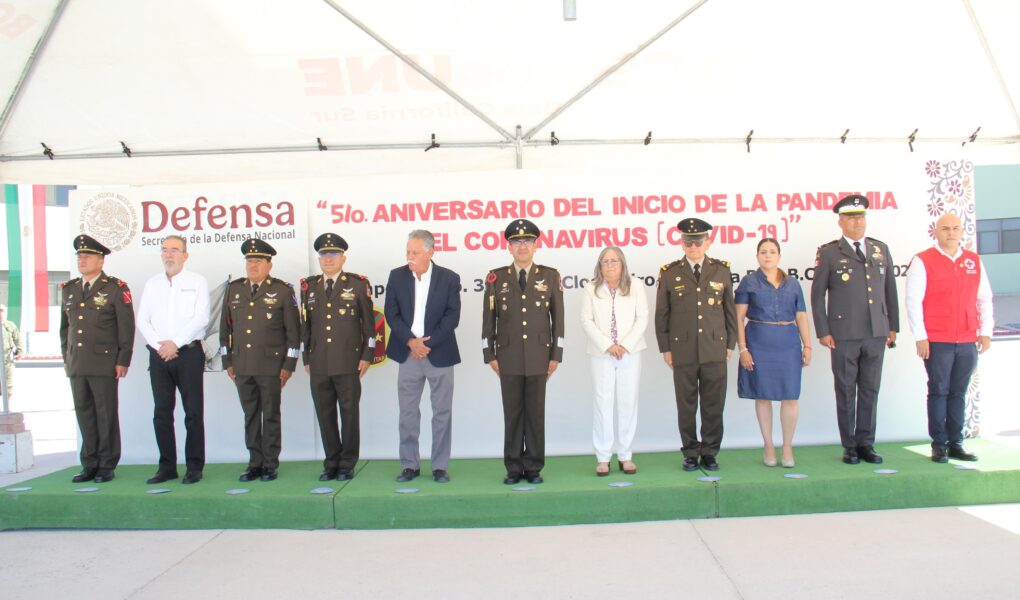 La Paz, B.C.S., 30 de marzo de 2025 – La Secretaría de la Defensa Nacional (Sedena) realizó una ceremonia conmemorativa por el 5° aniversario del inicio de la pandemia COVID-19, en el 3er. Batallón de
