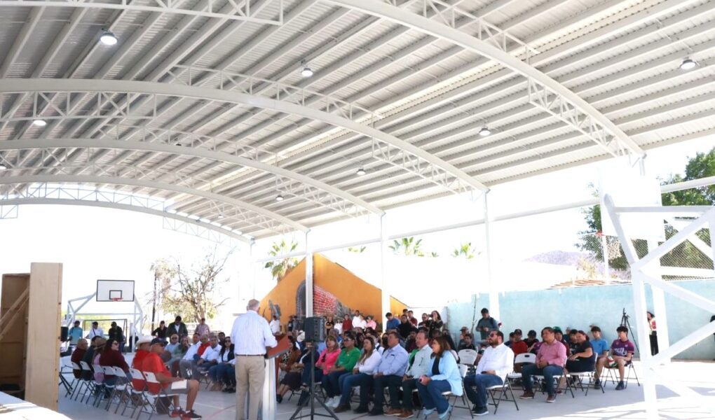 En un encuentro con habitantes de la comunidad de San Antonio, municipio de La Paz, para hacer entrega de obras de rehabilitación y techumbre de la cancha pública, el gobernador