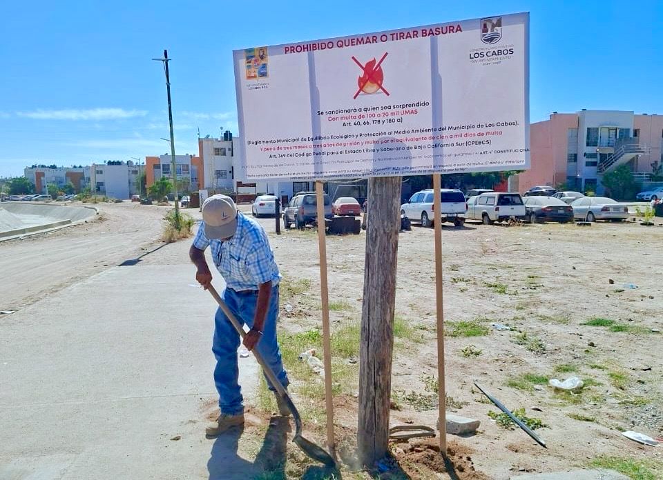 Los Cabos, Baja California Sur.– Con el objetivo de combatir los tiraderos clandestinos y fomentar hábitos adecuados en la disposición de residuos, la Coordinación de Subdelegados de Cabo Salud llevó a cabo la instalación de múltiples letreros informativos en diversas colonias de la delegación municipal.