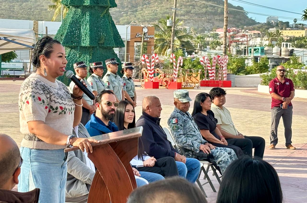 Durante el acto cívico, la delegada de Cabo San Lucas, Karina de la O Uribe dirigió un mensaje a servidoras y servidores públicos, así como a la ciudadanía en general, en el que destacó la urgencia de reflexionar sobre el impacto que las acciones humanas tienen en el planeta.