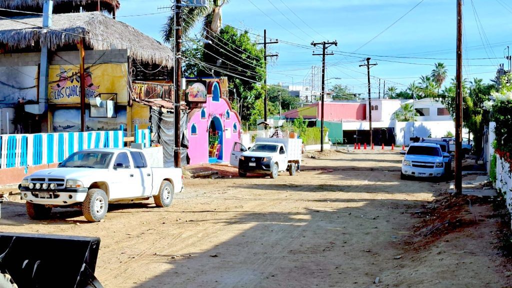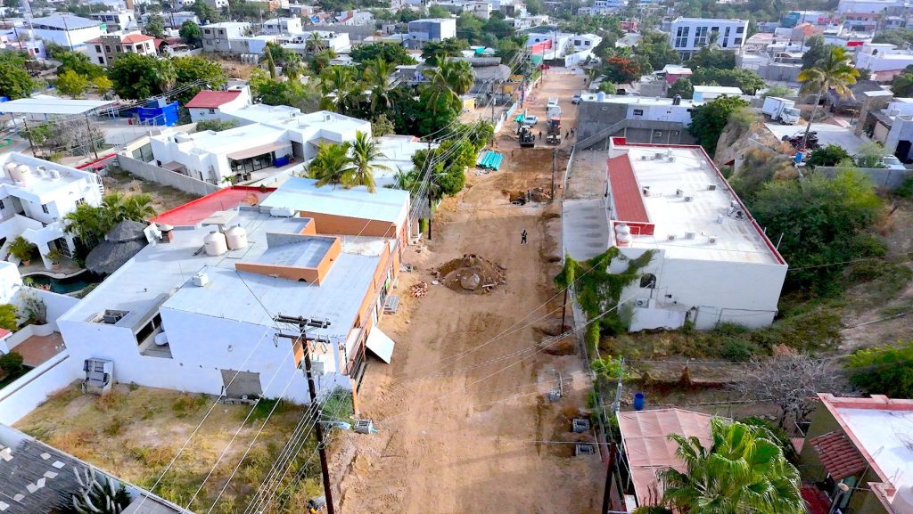 Los Cabos, Baja California Sur.– Como parte de las acciones orientadas a fortalecer la movilidad y transformar la infraestructura vial del municipio, el XV Ayuntamiento de Los Cabos desarrolla la pavimentación integral con concreto hidráulico de la calle Paseo de Los Marinos, en la colonia El Chamizal, en San José del Cabo, a través de la Dirección General de Obras Públicas y Asentamientos Humanos.