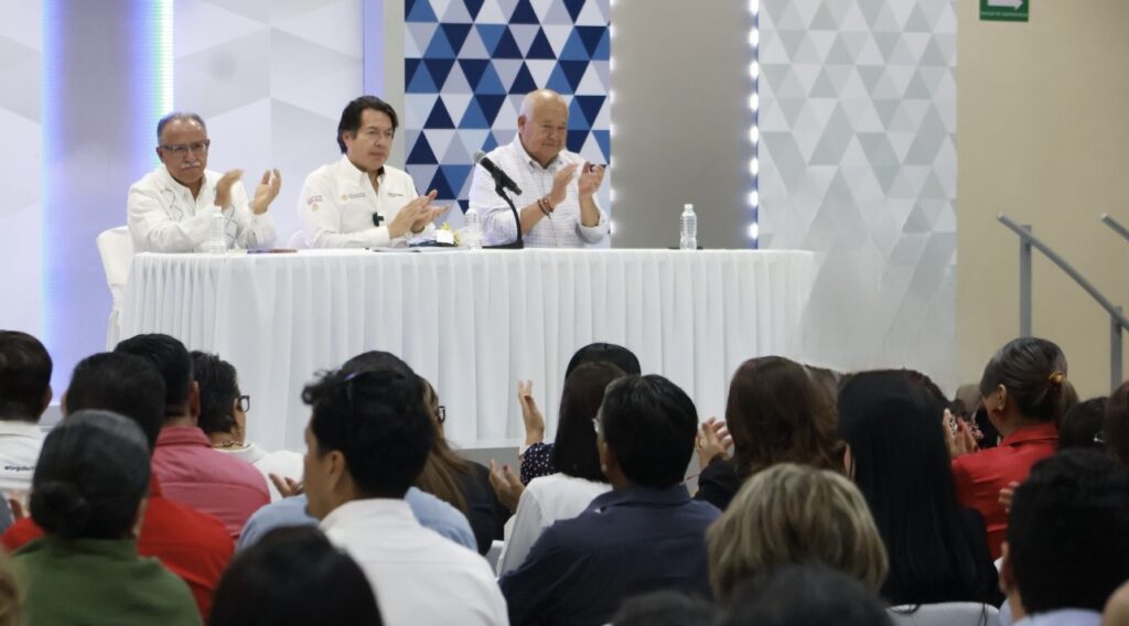 Durante el encuentro, Mario Delgado Carrillo ofreció una conferencia magistral sobre la NEM, en la que compartió los principios y alcances de este modelo educativo y subrayó la prioridad de la administración de la presidenta Claudia Sheinbaum en garantizar espacios de aprendizaje y fortalecer los programas de becas, facilitando la transición de la educación básica a la superior.