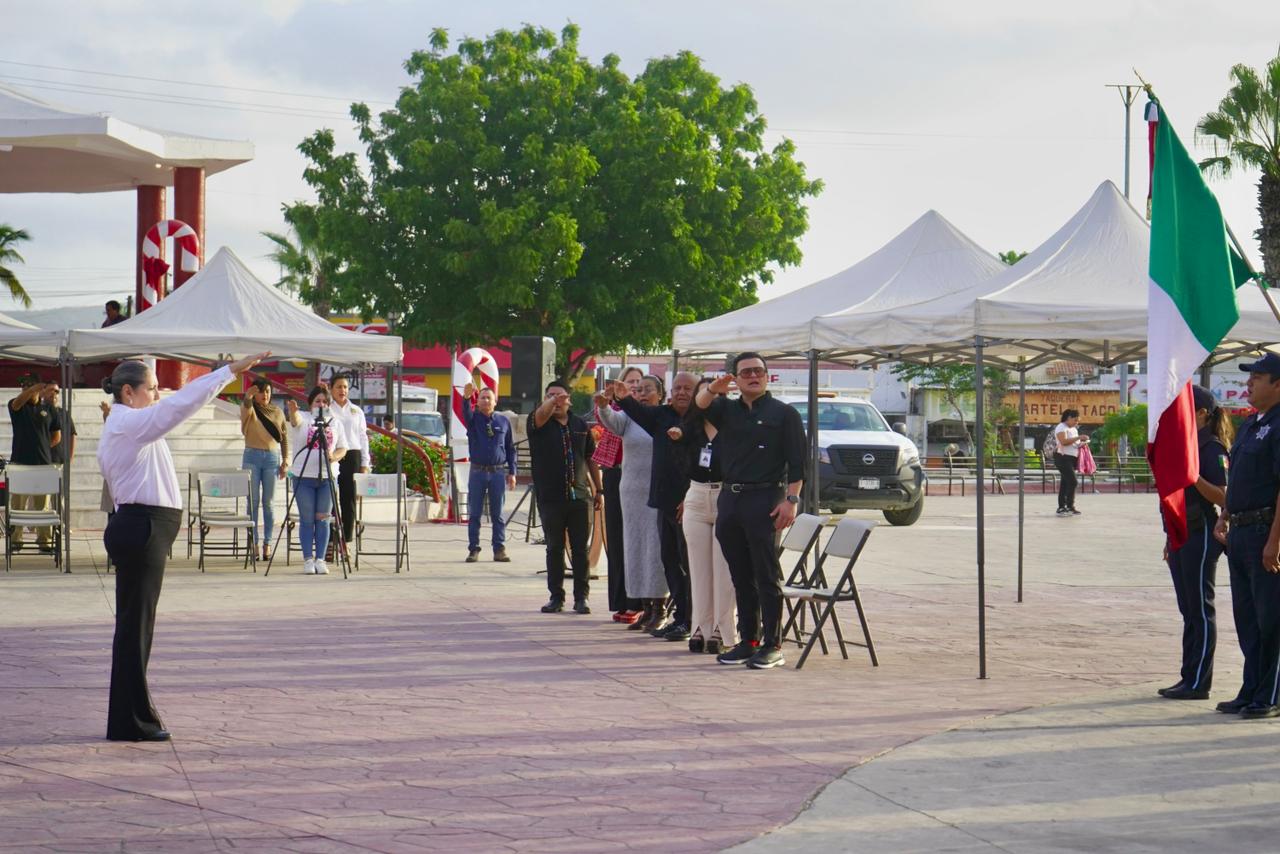 Los Cabos, Baja California Sur.– La Coordinación de Educación llevó a cabo los primeros Honores a la Bandera del año en la Delegación de Cabo San Lucas, acto cívico que fue encabezado por la delegada municipal Karina de la O Uribe, con la participación del personal de la Coordinación de Bibliotecas.