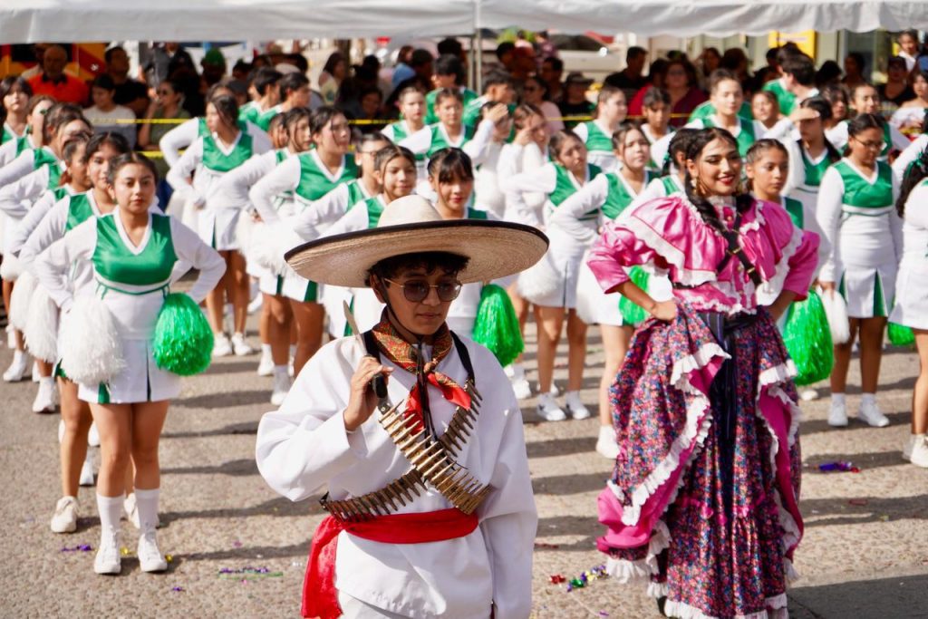 El desfile inició con la banda de guerra y escolta del CBTIS 256, dando paso a los contingentes escolares del Centro de Atención Múltiple “Profr. Juan Pedrín Castillo”, así como de las primarias Amelia Wilkes, Ramón Green Álvarez, Efraín Ceseña Ceseña, Ildefonso Green Ceseña, Jesús Castro Agúndez y el Colegio Leonardo Da Vinci. En nivel secundaria participaron la Técnica No. 18 Moisés Sáenz Garza, Secundaria General No. 8, Técnica No. 16, Raúl Enrique Guerrero Montaño y Técnica No. 19.