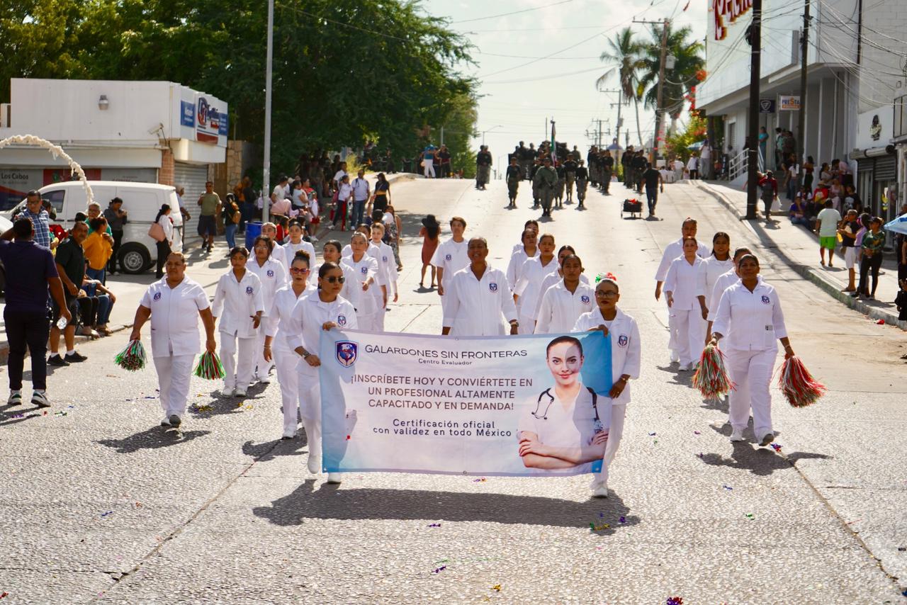 Los Cabos, Baja California Sur.- En representación del presidente municipal de Los Cabos, Christian Agúndez Gómez, el director general de Desarrollo Social, Carlos Castro Ceseña encabezó el desfile cívico-deportivo conmemorativo por el CXV Aniversario de la Revolución Mexicana en la delegación de Cabo San Lucas. El recorrido se desarrolló sobre la calle José María Morelos y Pavón y la avenida de la Juventud, con la participación de 29 contingentes integrados por escuelas de distintos niveles, cuerpos de emergencia y agrupaciones civiles.