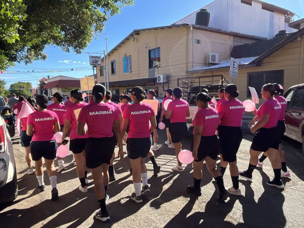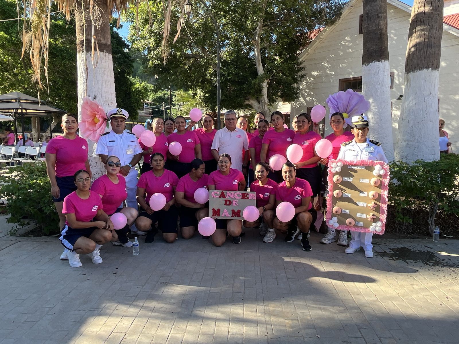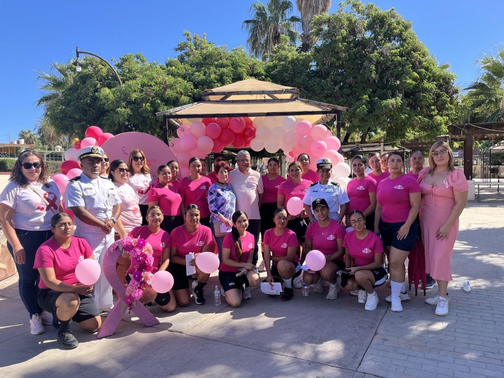 Santa Rosalía, BCS.- La Secretaría de Marina a través de la Armada de México, informa que hoy, en el marco del Día Mundial de la Lucha contra el Cáncer de mama, personal de mujeres del Sector Naval de Santa Rosalía participó activamente en la caminata conmemorativa realizada en esta localidad.