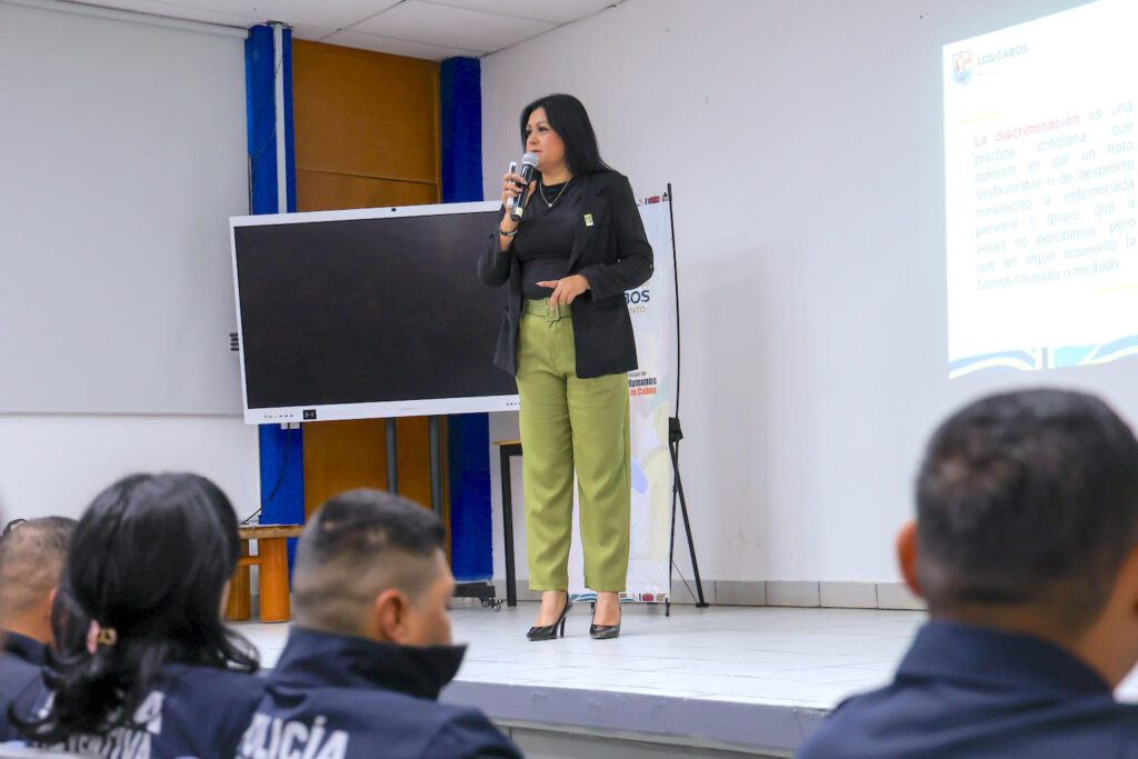 Los Cabos, Baja California Sur.– En seguimiento a la estrategia permanente de capacitación y profesionalización del personal operativo, el XV Ayuntamiento de Los Cabos, a través de la Dirección General de Seguridad Pública, Policía Preventiva y Tránsito Municipal, llevó a cabo una capacitación especializada en “Prevención de la Discriminación”, dirigida a elementos de la Policía Preventiva.