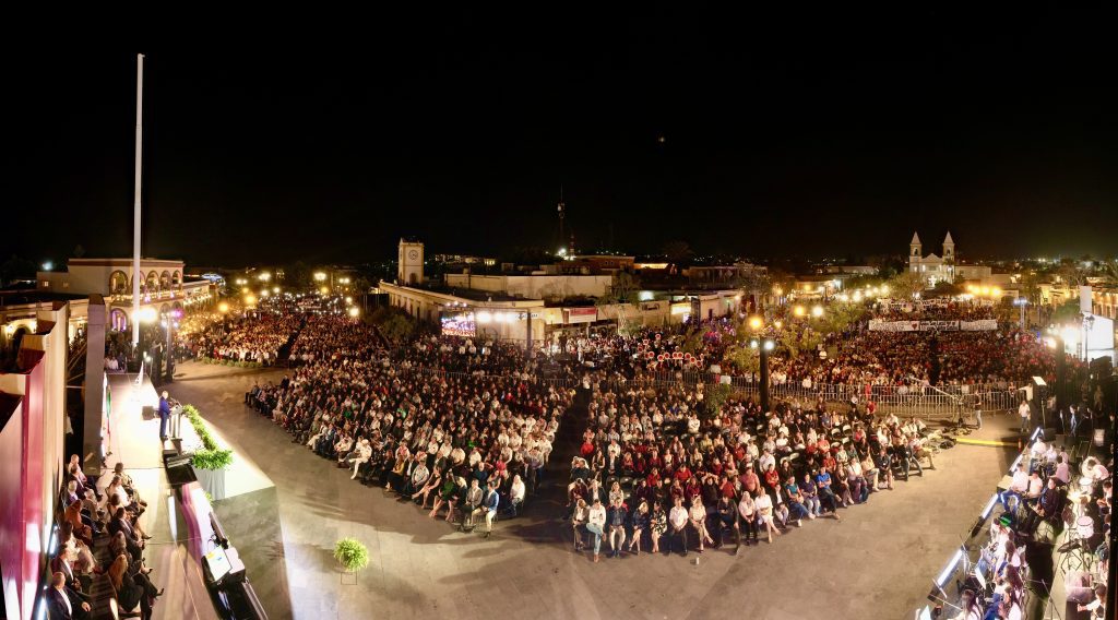 Desde la plaza Antonio Mijares de San José del Cabo, el mandatario resaltó que, aunque los desafíos son muchos, existe una firme voluntad para fortalecer a Baja California Sur. Afirmó que la Cuarta Transformación avanza como un proceso de cambio pacífico, con justicia y dignidad, orientado al bienestar.
