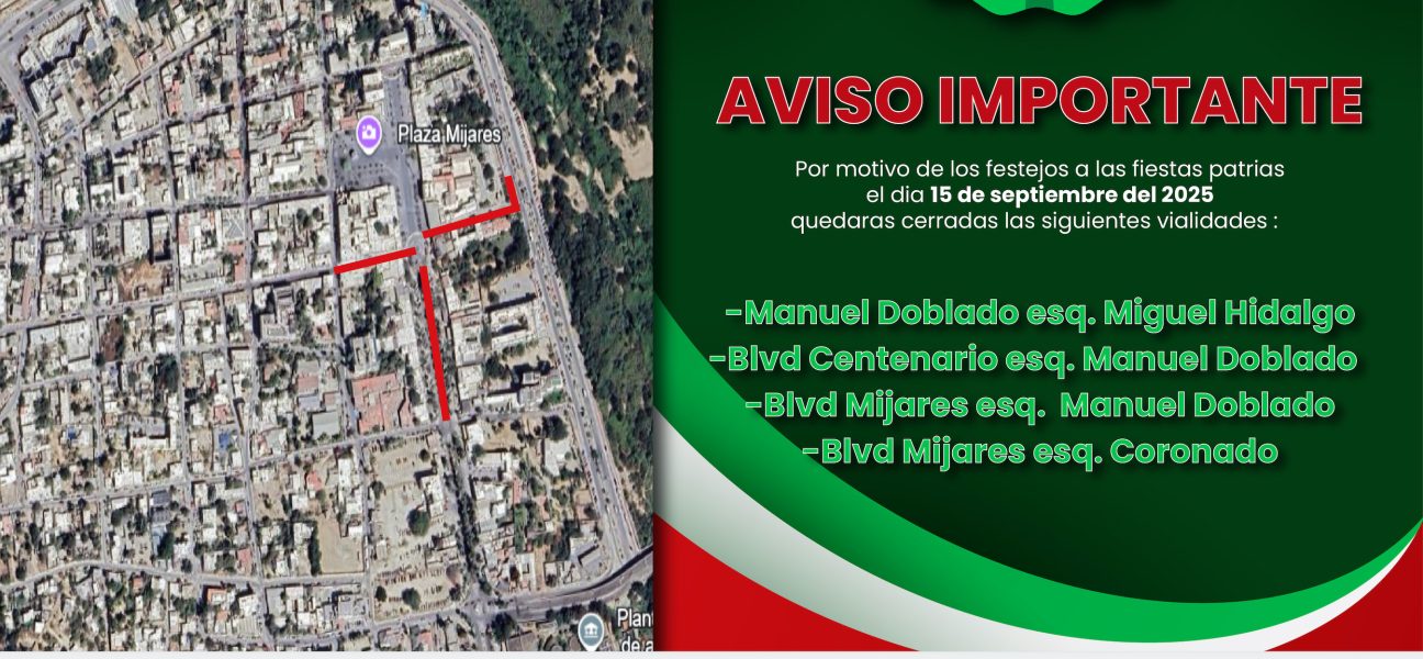 La Dirección General de Seguridad Pública, Policía Preventiva y Tránsito Municipal, comunica a la población en general que debido a la celebración de las Fiestas Patrias 2025, se realizará el.