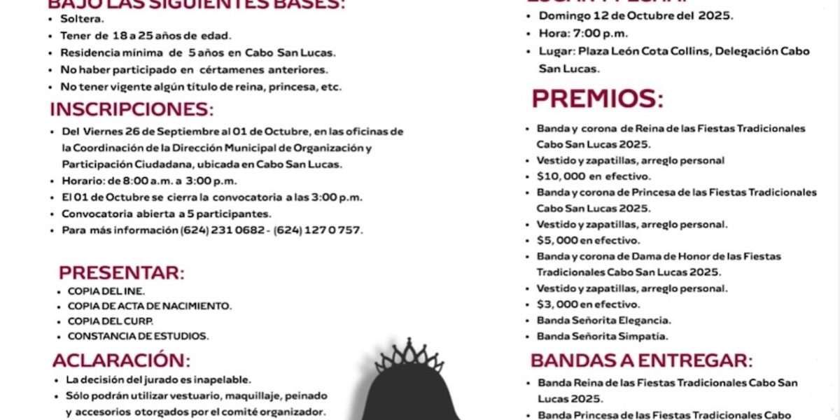 El XV Ayuntamiento de Los Cabos, a través de la Dirección General de Desarrollo Social y la Dirección Municipal de Organización y Participación Ciudadana, anunció de manera oficial las convocatorias.