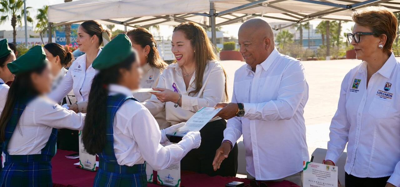 Los Cabos, Baja California Sur.– En el marco de los honores a la bandera realizados en la plaza pública “León Cota Collins”, la Dirección Municipal de Educación, a través de.