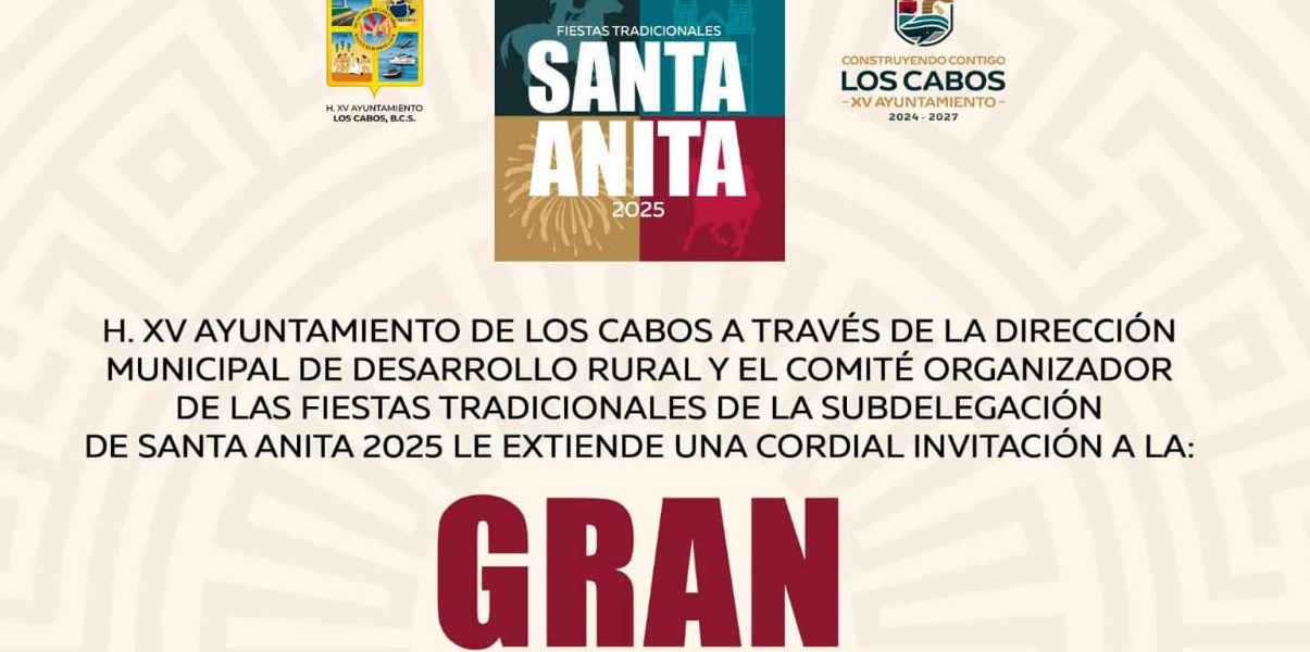 Los Cabos, Baja California Sur.- En el marco de las Fiestas Tradicionales de Santa Anita 2025, este sábado 26 de julio se llevará a cabo la tradicional cabalgata, que será.