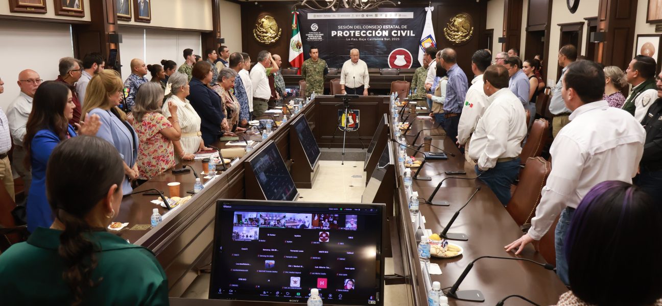 Ante la posible afectación por el paso de la tormenta tropical “Lorena” en territorio de Baja California Sur, sesionó el Consejo Estatal de Protección Civil, encabezada por el gobernador Víctor.