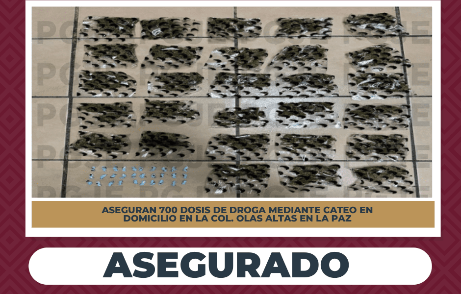 Cateo en La Paz deja aseguradas 700 dosis de narcóticos