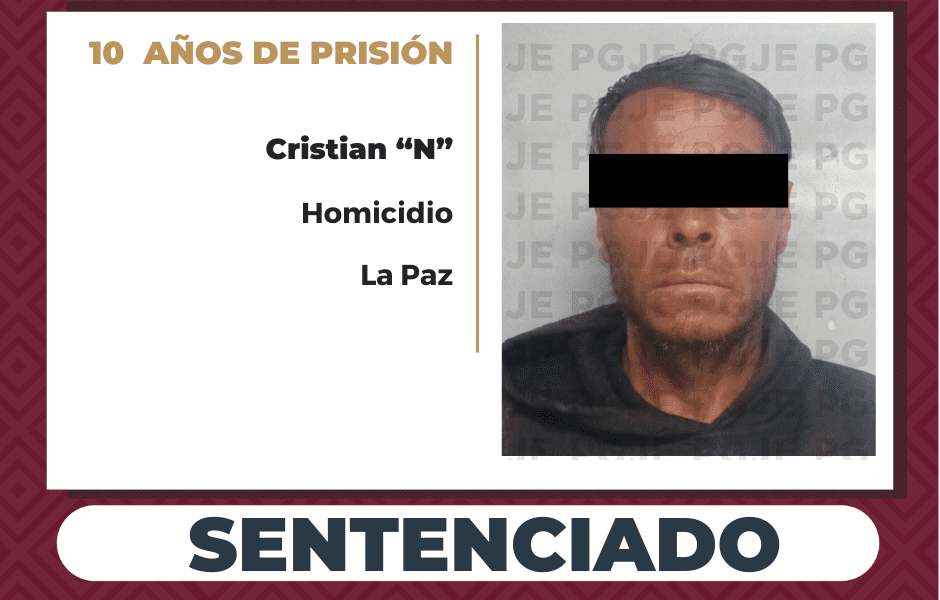 La Paz, BCS.- Derivado de la investigación exhaustiva y la presentación de datos de prueba contundentes, la Procuraduría General de Justicia del Estado (PGJE) de Baja California Sur, obtuvo una sentencia condenatoria.