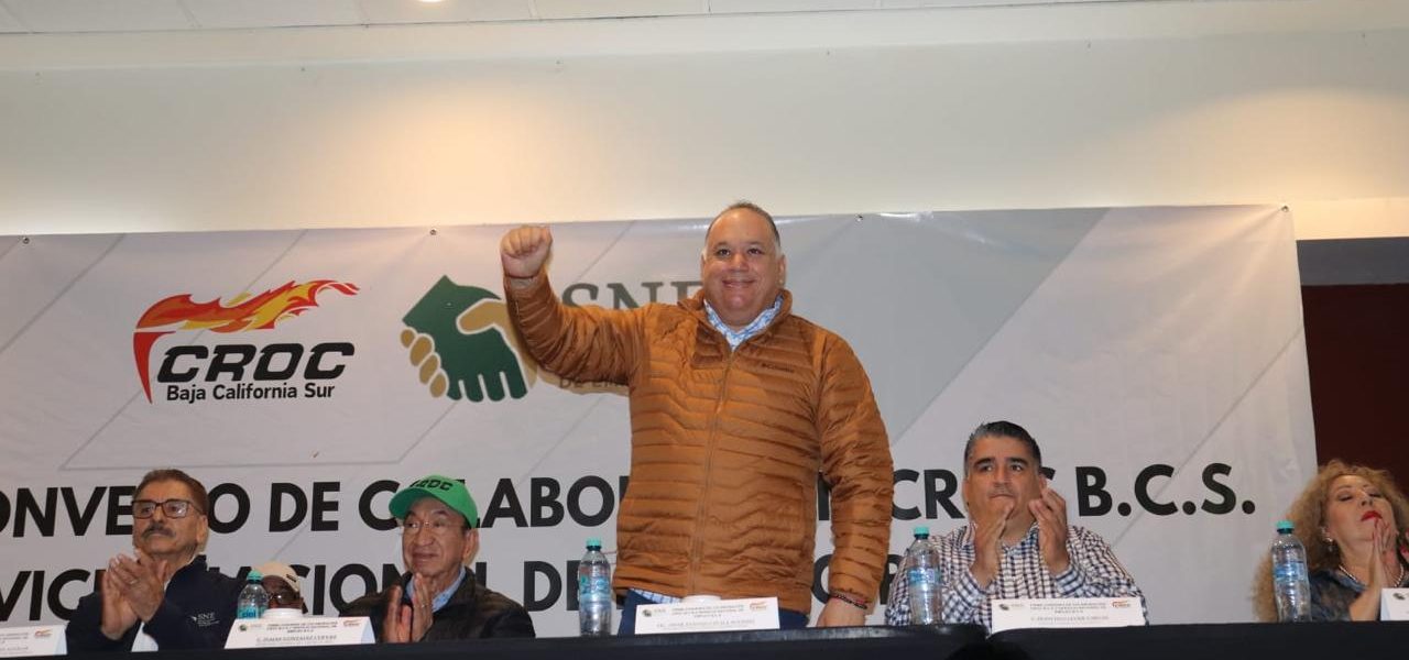 Cabo San Lucas.- El dirigente nacional de la CROC, Isaías González Cuevas presidió en CSL la firma del convenio de colaboración entre el sindicato croquista y el Servicio Nacional del.