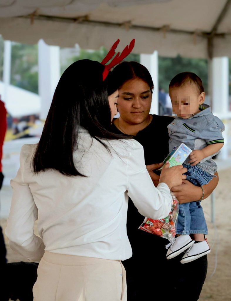 Uno de los momentos más destacados fue la rifa de regalos, en la que se entregaron bicicletas, balones, patines y diversos artículos electrónicos y electrodomésticos, entre ellos televisiones, refrigeradores y lavadoras, lo que generó gran participación entre las familias asistentes.