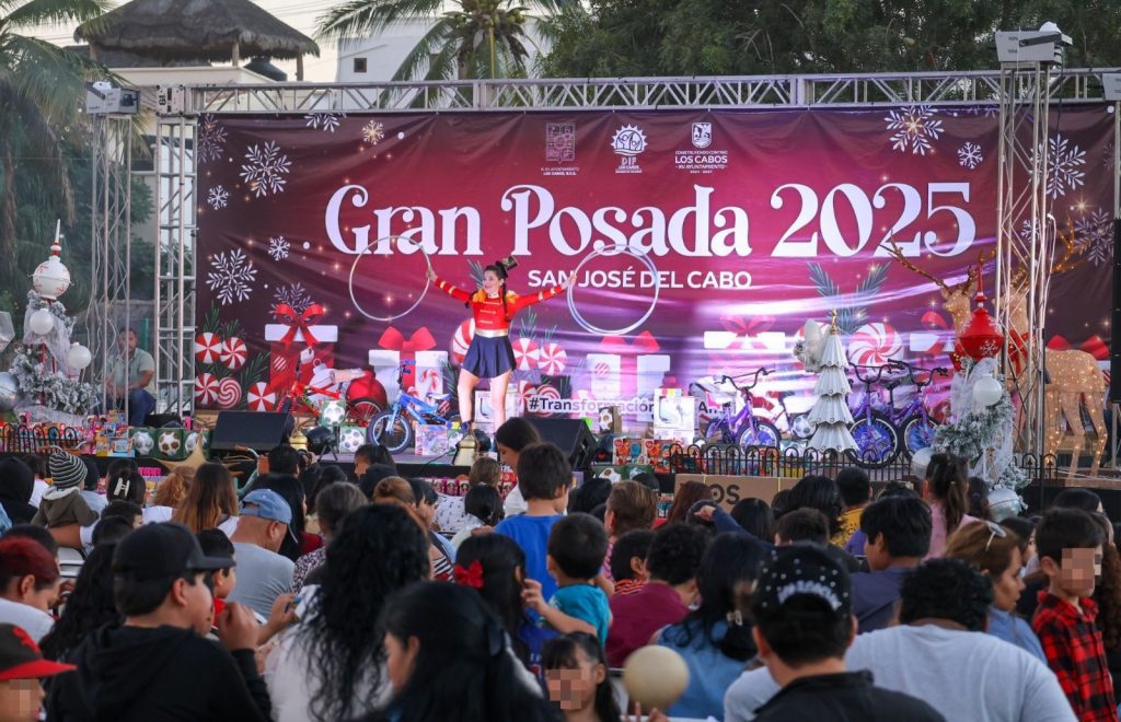 Los Cabos, Baja California Sur.- El XV Ayuntamiento de Los Cabos, en coordinación con el Sistema Municipal para el Desarrollo Integral de la Familia (DIF), llevó a cabo la Gran Posada 2025 en el Campo Deportivo Aguajitos, en San José del Cabo, donde se reunieron más de mil niñas, niños y personas adultas.