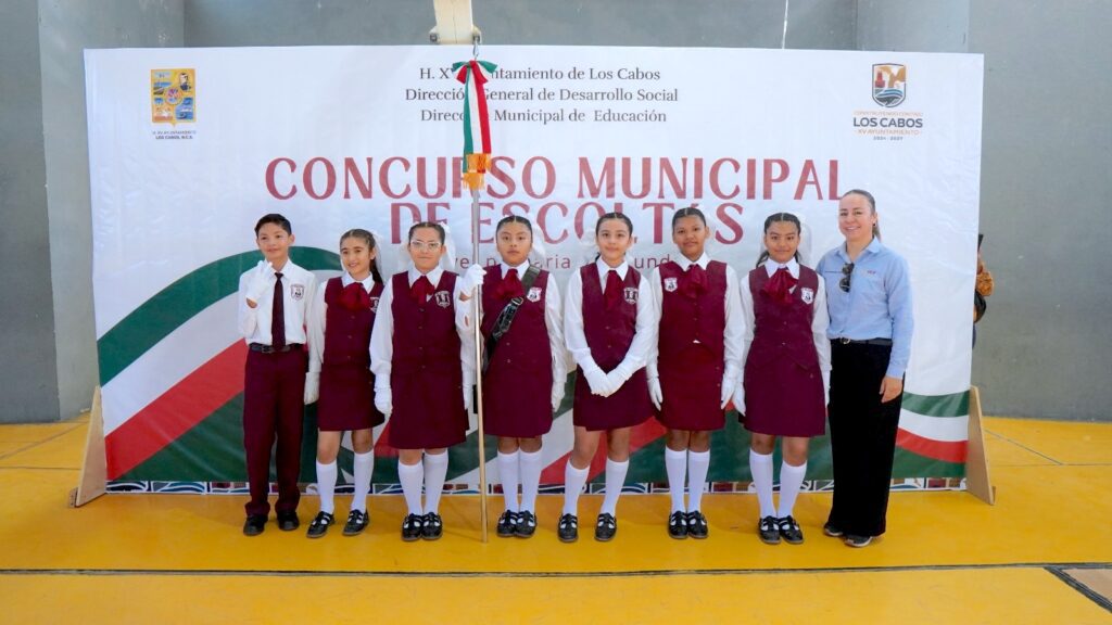 Los Cabos, Baja California Sur.– En el marco del Mes de la Bandera, el XV Ayuntamiento de Los Cabos, a través de la Dirección Municipal de Educación, llevó a cabo el tradicional Concurso Municipal de Escoltas 2026 en el Auditorio Fernando I. Cota Sández, en San José del Cabo, evento que reúne a instituciones educativas de nivel primaria y secundaria con el propósito de fortalecer los valores cívicos y el respeto a los símbolos patrios.