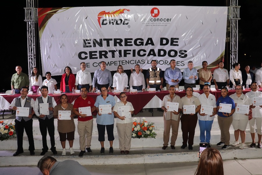 Por su parte el alcalde Christian Agúndez Gómez anunció un apoyo ecónomico decembrino a cada uno de los trabajadores que fueron certfiicados en competencias laborales con el reconocimiento de CONOCER y de la Secretaría de Educación Pública.