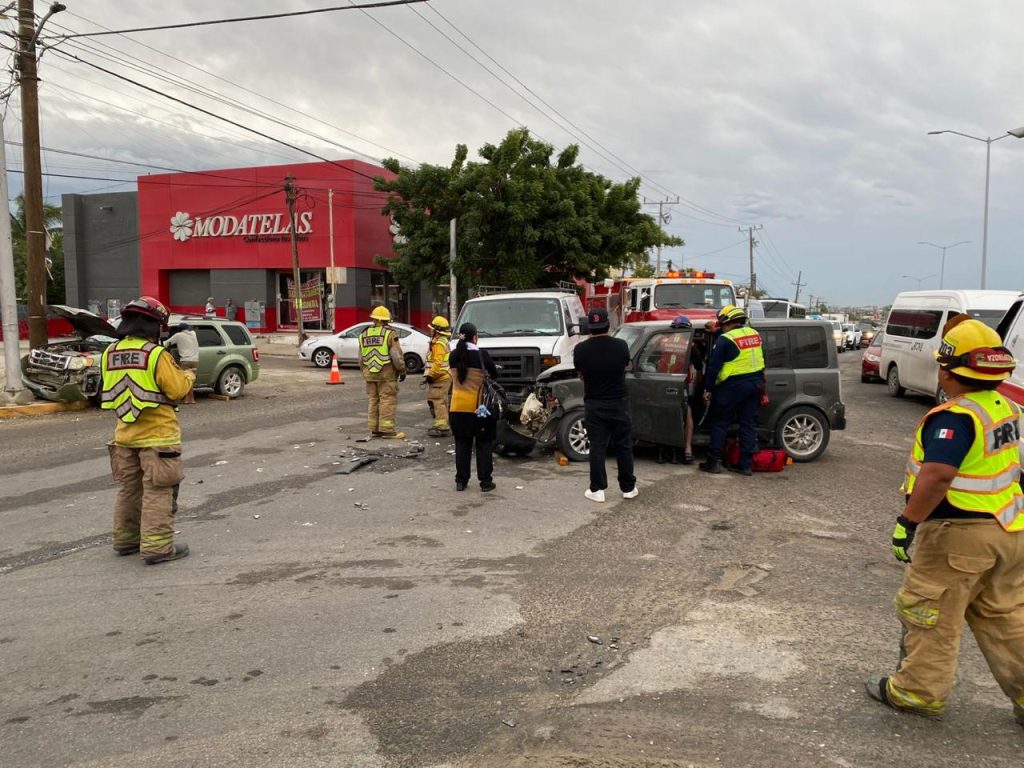 San José del Cabo, BCS.- La mañana de este jueves se registró un choque vehicular que involucró a tres unidades sobre la carretera Transpeninsular, en la colonia Santa Rosa, a la altura de una tienda de telas ubicada en el sentido Centro hacia Aeropuerto, provocando el cierre parcial de la circulación.