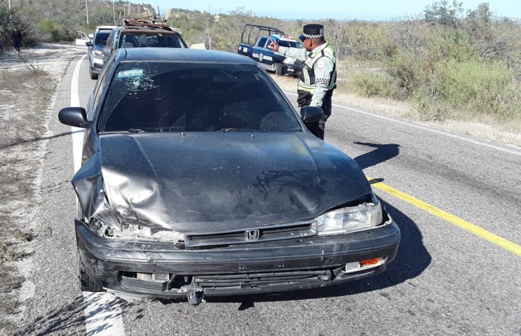 Los Cabos, Baja California Sur.– Un accidente automovilístico tipo choque en el que se vieron involucrados tres vehículos dejó como saldo seis personas lesionadas la tarde de este sábado sobre la carretera federal, a la altura de la zona conocida como Los Paredones, en el tramo comprendido entre la delegación de Santiago y la comunidad de Las Cuevas.
