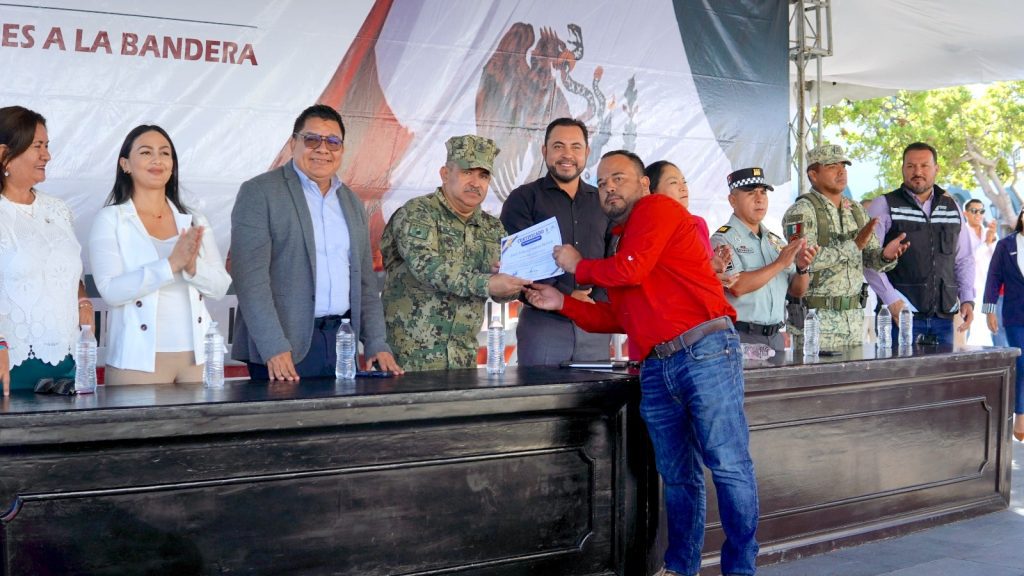 La ceremonia de honores a la bandera estuvo a cargo de la Dirección de Planeación para el Desarrollo Municipal, encabezada por María Guadalupe Ceseña Torres, quien subrayó los avances en materia de planeación participativa, el cumplimiento de metas del Plan de Desarrollo Municipal (PDM) y la alineación con los objetivos nacionales de desarrollo.
