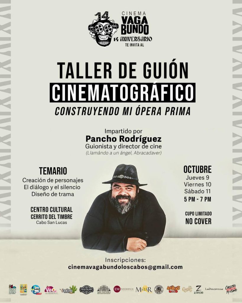 Los Cabos, Baja California Sur.– Con el apoyo del XV Ayuntamiento de Los Cabos, hoy jueves 09 de octubre darán inicio las actividades conmemorativas por el XIV aniversario de Cinema Vagabundo, con la participación de reconocidos invitados especiales del ámbito cinematográfico nacional.