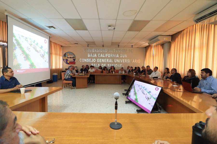 Carolina Armenta Cervantes, Secretaria de Planeación Urbana, Infraestructura, Movilidad, Medio Ambiente y Recursos Naturales (SEPUIMM) del Gobierno del Estado, y Milena Quiroga Romero, Alcaldesa de La Paz, presentaron ante el H. Consejo General Universitario de la Universidad Autónoma de Baja California Sur, máximo órgano de gobierno de la UABCS, el proyecto de ampliación de las vialidades laterales que rodean al campus universitario, con el propósito de agilizar la movilidad, reducir el tráfico vehicular y fortalecer la seguridad peatonal en la zona.