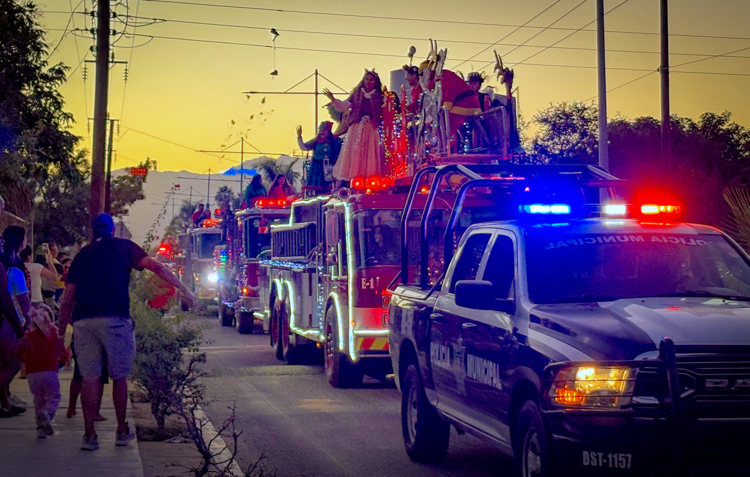 Los Cabos, Baja California Sur.- Gracias al respaldo de la comunidad, el Departamento de Bomberos de San José del Cabo llevó a cabo su tradicional Desfile Navideño de la Lluvia de Dulces en la cabecera municipal y en la delegación de La Ribera, con el objetivo de acercar actividades decembrinas a las familias y fortalecer la convivencia comunitaria.