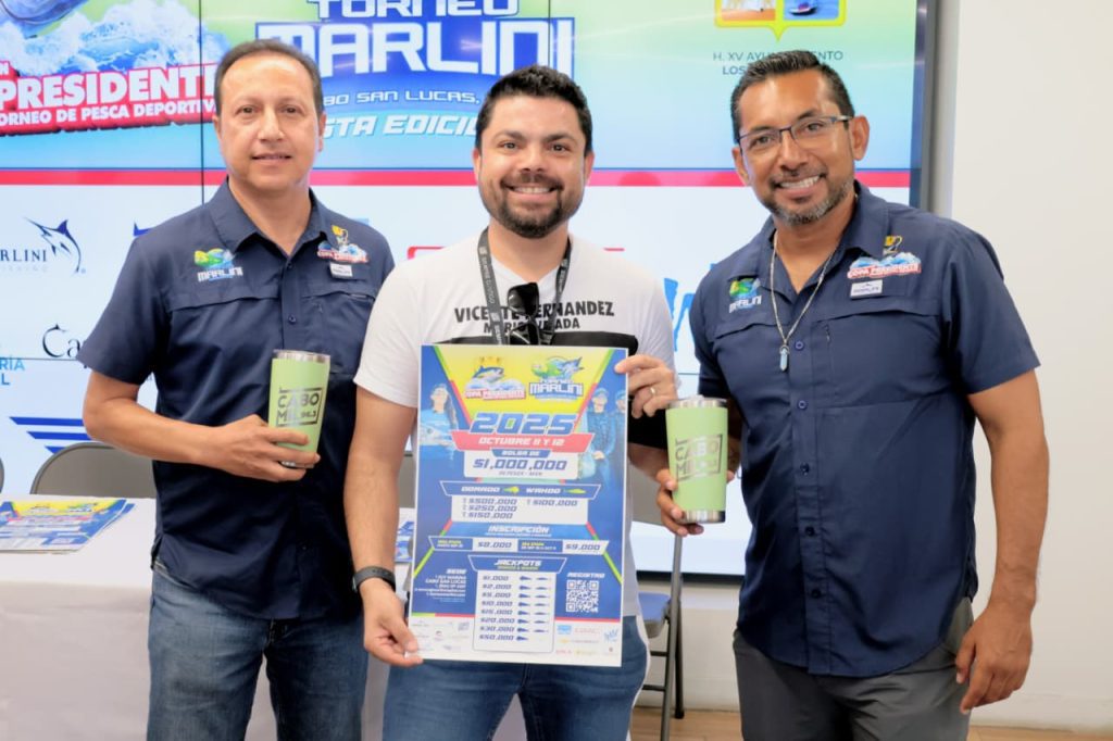 Los Cabos, Baja California Sur.– Con una bolsa garantizada de $1 millón de pesos en premios, fue anunciado en conferencia de prensa el torneo de pesca deportiva “Copa Presidente–Marlini”, que celebrará su cuarta edición los días 11 y 12 de octubre, en el marco de las Fiestas Tradicionales Cabo San Lucas 2025.