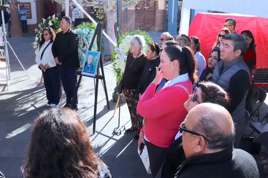 Durante el acto solemne, el presidente municipal Christian Agúndez Gómez expresó sus condolencias a familiares, amistades y compañeros del comunicador, destacando su presencia constante en la cobertura del quehacer público y su compromiso con la labor periodística.